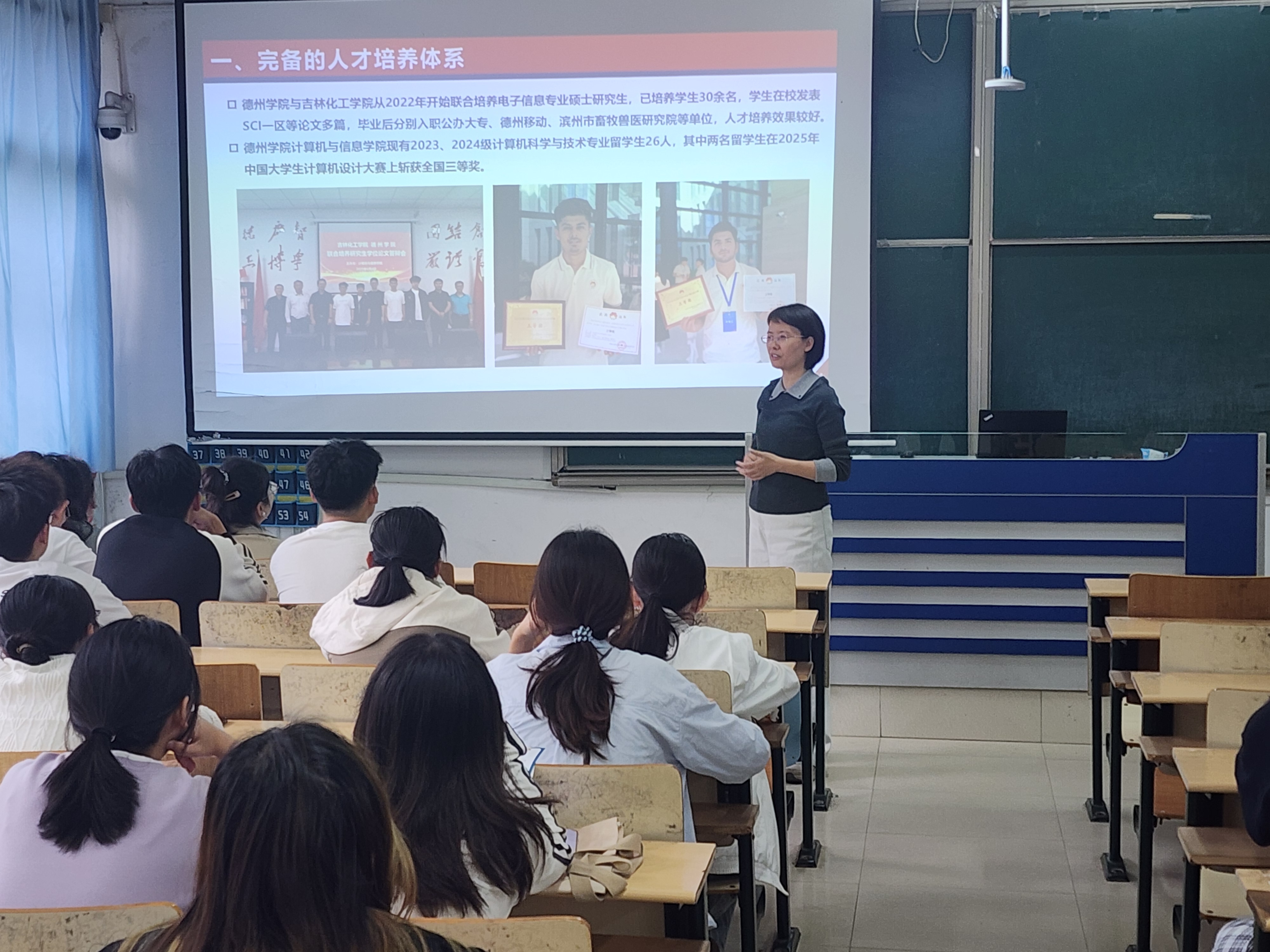 此次校校招生宣讲,是德州学院计算机与信息学院精准对接优质生源、优化研究生招生工作的重要举措,既实现了招生信息的高效传递,也为两校后续在学科交流、人才培养等方面的合作奠定基础。下一步,学院将继续聚焦目标院校开展针对性宣讲,持续完善招生服务,为提升研究生生源质量、推动学科高质量发展提供有力支撑。